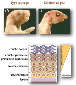 homéostasie épidermique. Ils ont ainsi montré que p63 est impliqué dans le maintien de la prolifération cellulaire et l’initiation de la différenciation des kératinocytes par deux mécanismes distincts.