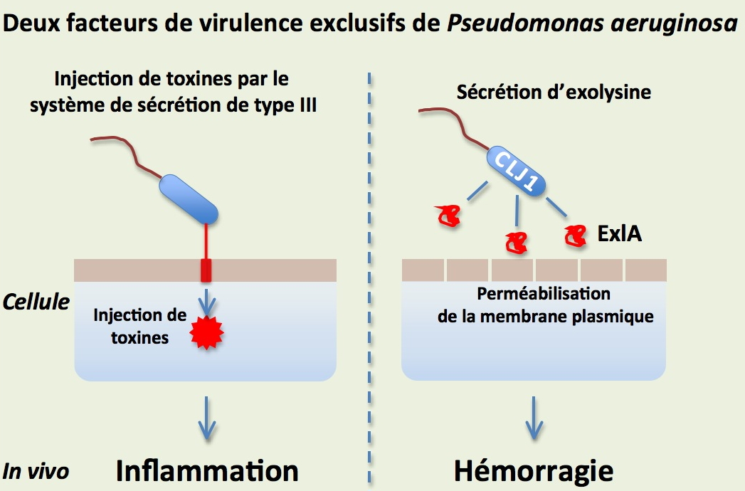 P. aeruginosa au niveau des poumons infectés sont ainsi identifiées : la première, déjà connue, provoque une inflammation tissulaire par injection de toxines ; la seconde, décrite ici, provoque une hémorragie par un mécanisme impliquant une nouvelle toxine libérée à proximité des cellules. Ces deux voies devront désormais être prises en compte pour le développement de nouveaux antimicrobiens ou de vaccins, la résistance aux antibiotiques actuels ne cessant d’augmenter chez ce pathogène. Les médecins hospitaliers connaissent bien